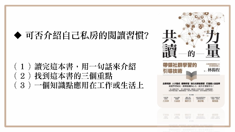 這是最多人問我的問題,帶讀書會的專家,可不可以分享一下學習讀書的秘訣?