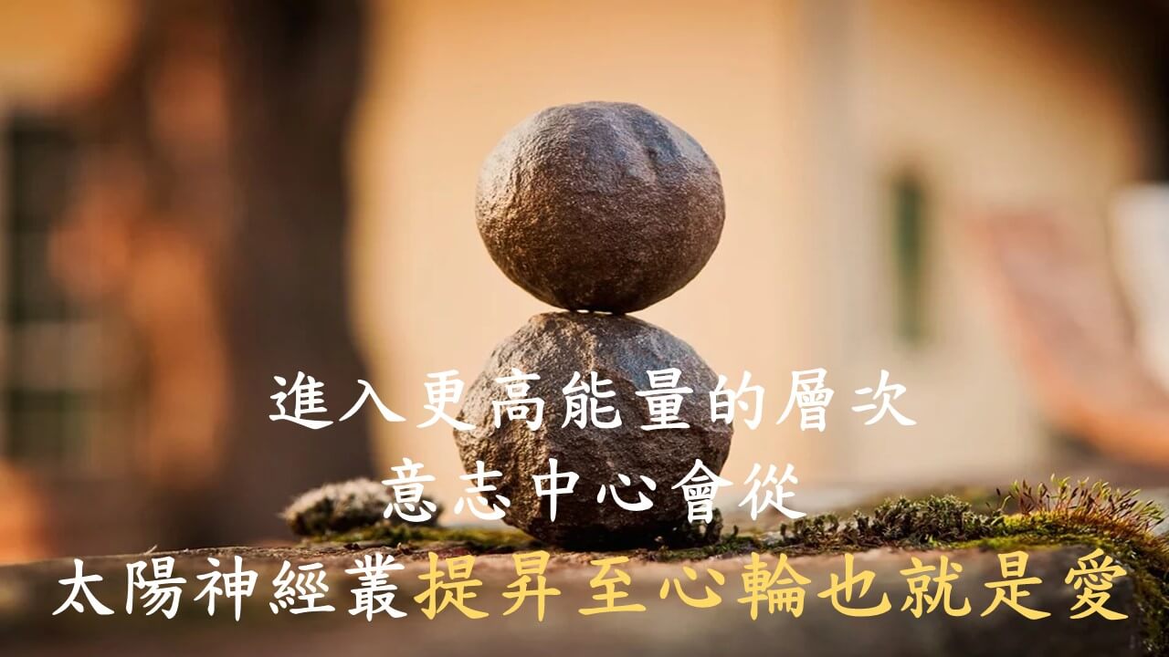 - 2. 進入更高能量的層次,意志中心會從太陽神經叢提昇至心輪也就是愛