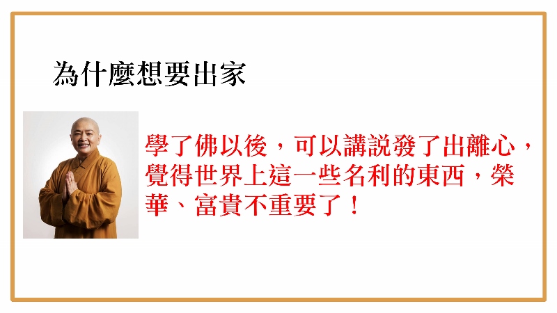後來回到學校繼續來唸書,所以我現在常常講,我是先出家再學佛。