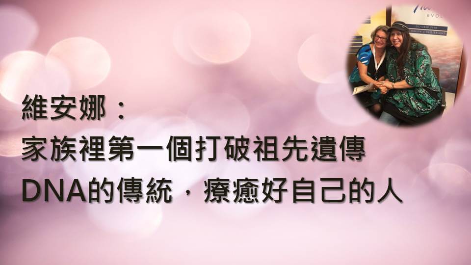 維安娜老師是他們家族裡面第一個打破祖先遺傳,因為她的祖先都是右腿發生問題,無論找療癒師聊天,還是找醫生尋求都沒有效果,有的甚至是截肢,只有維安娜打破了這個DNA的傳統,破除後,自己把自己療癒好。祖先也有試著找療癒師,但是沒有辦法。