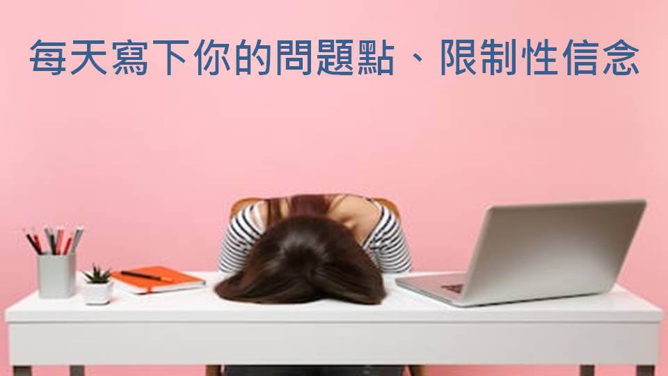 可以每天寫下你的問題點,也許你有些信念把它寫下來,很多人可能沒有學希塔,不知道怎麼深度挖掘,可是基本的自我清理簡單跟大家分享一下,你可以每天打坐到希塔波狀態,寫下你有什麼限制性信念。
