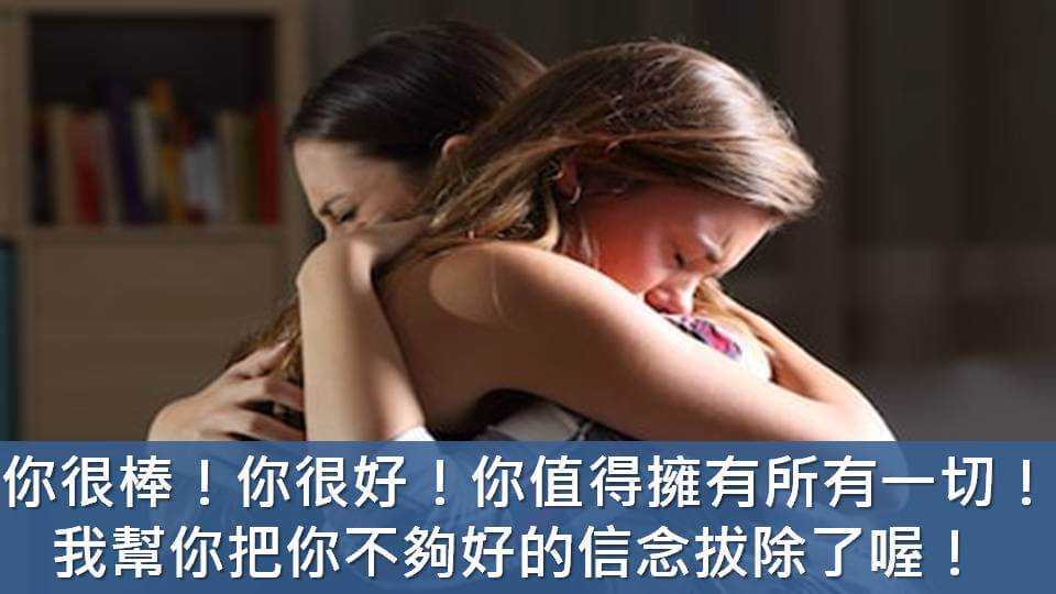 你擁抱他跟他說:「你很棒!你很好!你值得擁有所有一切!我幫你把你不夠好的信念拔除了喔!」