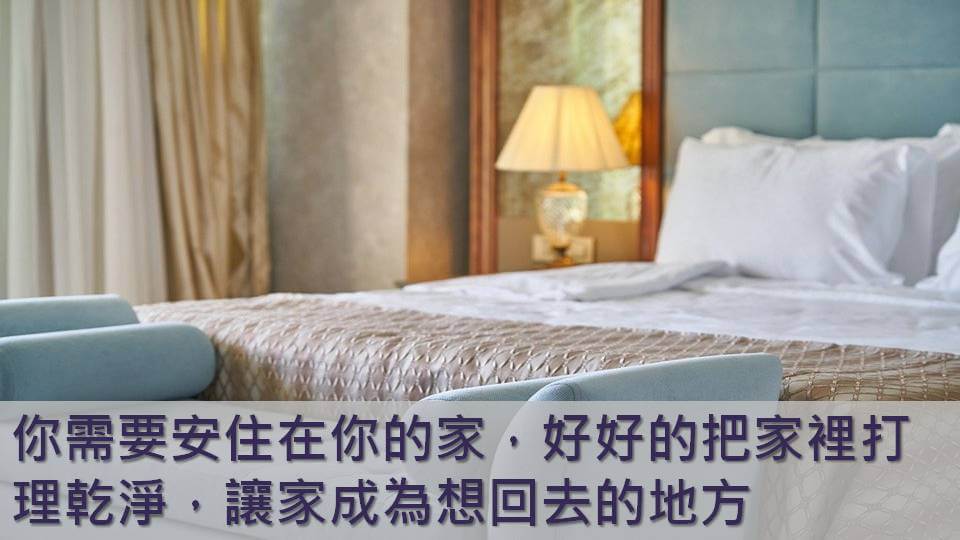 你需要安住在你的家,好好的在家裡,先把家裡打理乾淨,讓家成為每一個都想回去的地方。