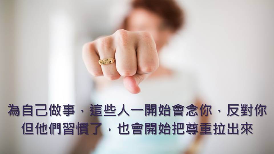 為自己去做這個事情,這一些人一開始會念你,反對你,他們習慣了,也會開始把那個尊重的東西拉出來。