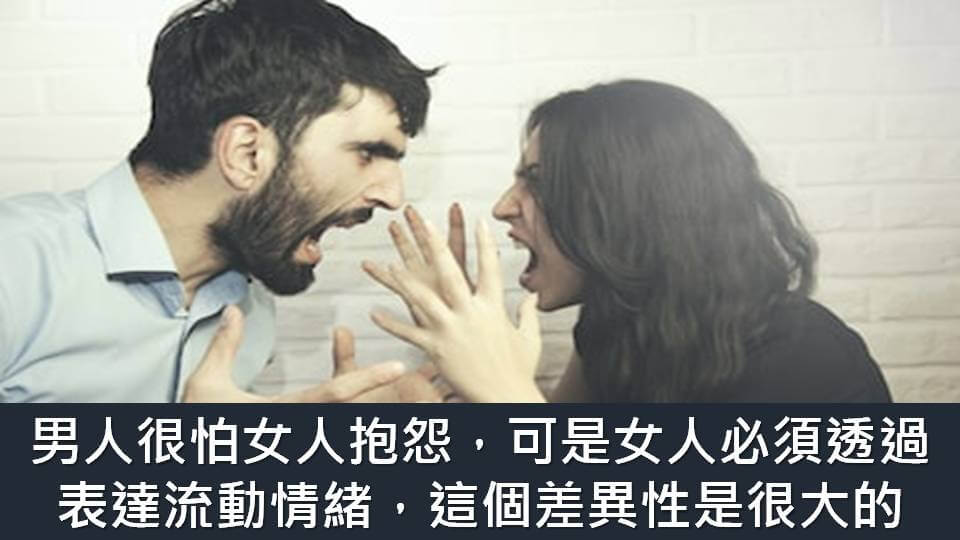 我會先講這個,因為男人他們很害怕女人跟他提,又要抱怨,可是女人必須要透過表達去流動情緒,這個差異性是很大的。