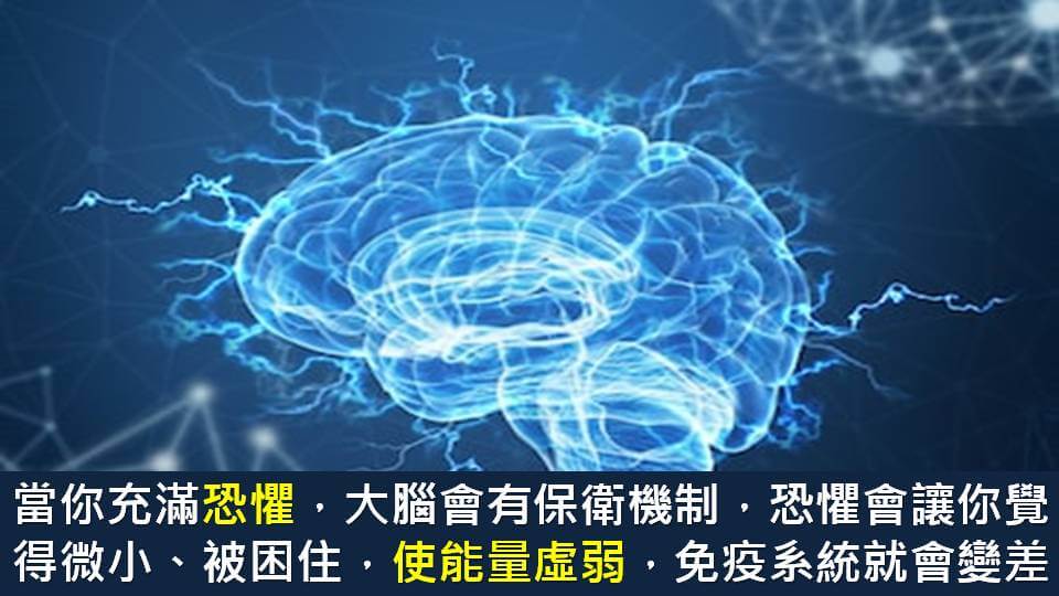 當你身上充滿恐懼時,你的大腦會開始有保衛的機制,好像很保護你自己的作用時,恐懼會讓你覺得你很微小,你好像被困住了,讓你的能量變得很虛弱。
