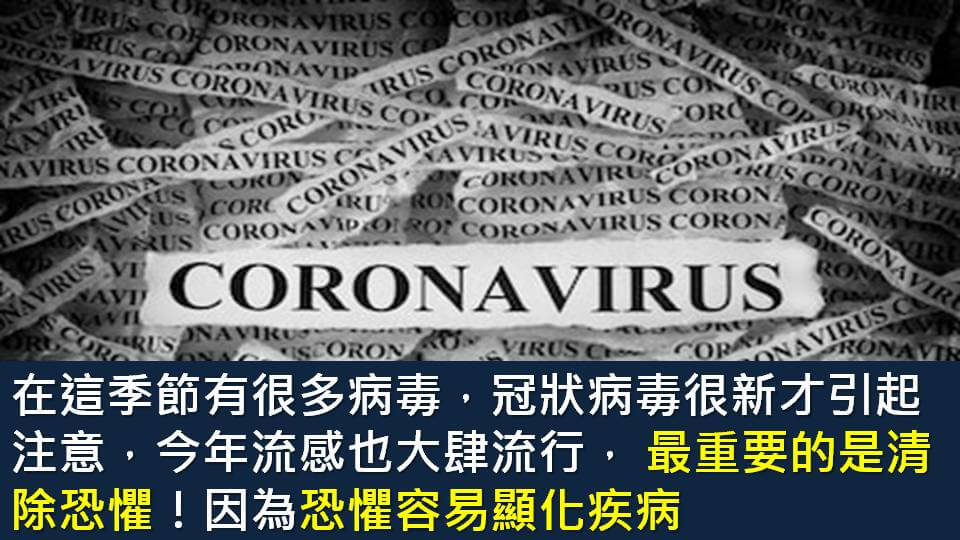 一般來說,在這個季節本來就有很多的病毒,而這個冠狀病毒因為是一個新的東西才會引起很多關注,一般的流感也有類似的病狀,今年流感也是大肆流行,所以最重要的是去清除恐懼!因為恐懼很容易顯化疾病。