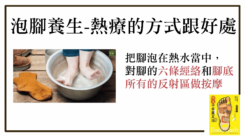 因為我們的腳有六條經絡,腳又佈滿了很多身體五臟六腑的反射區,我們就用古人的一個方法,熱療的方式,把腳泡在熱水當中,也就是對我們六條的經絡,還有腳底所有的反射區做一個按摩,所以這是對民眾最簡單、最輕便的一個方式。