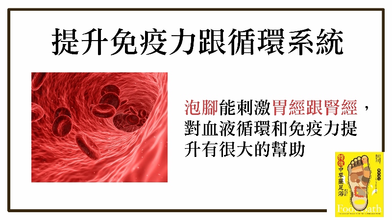 泡腳就能刺激到胃經跟腎經,保養我們的先天、後天,而且泡腳血液循環也很好,所以免疫力提升也有很大的幫助。