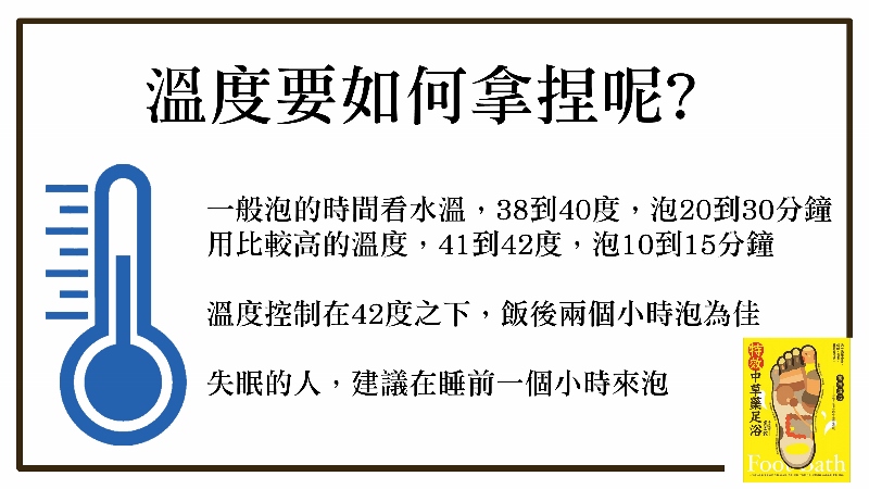 4.一般泡的時間看水溫,38到40度,泡20到30分鐘