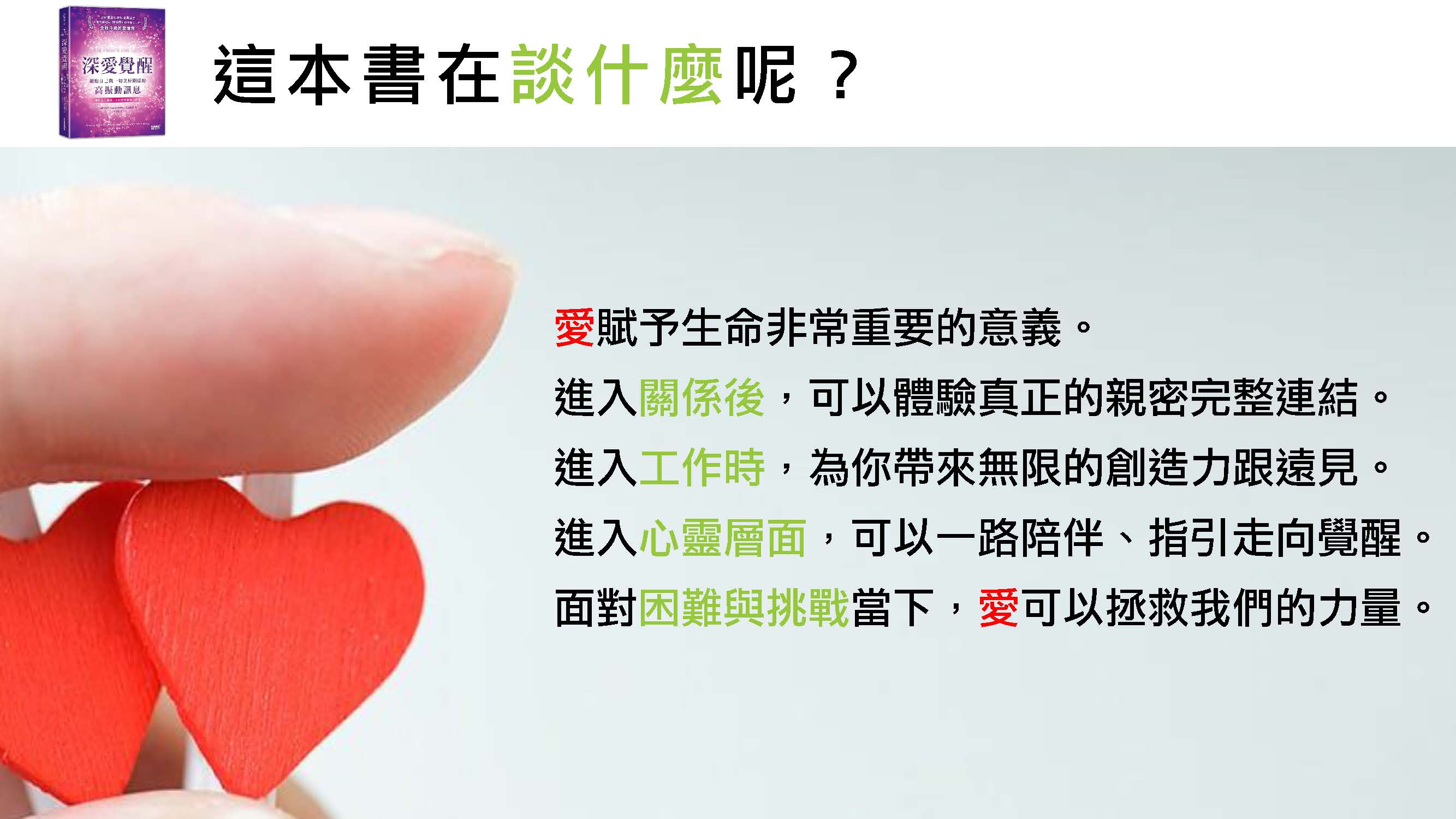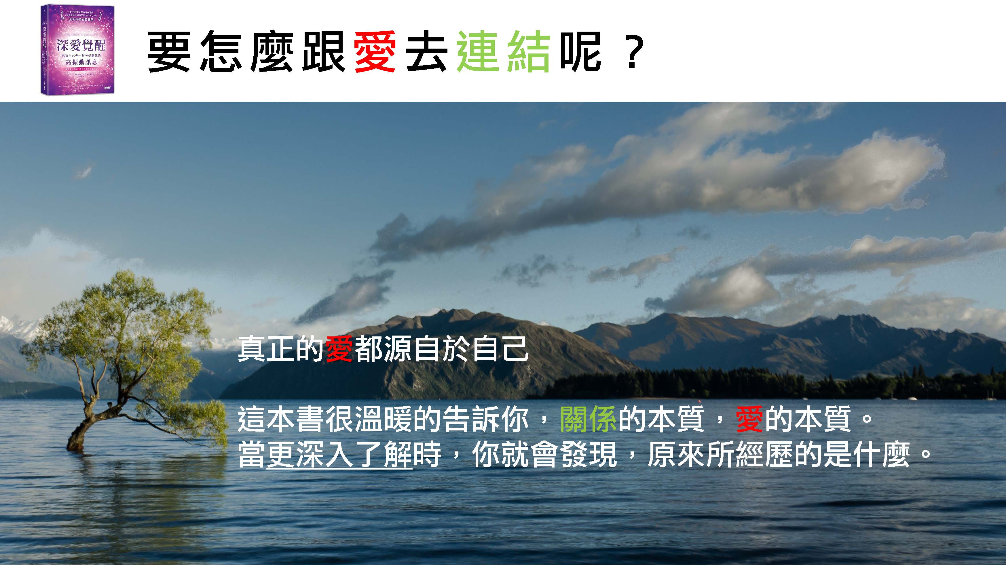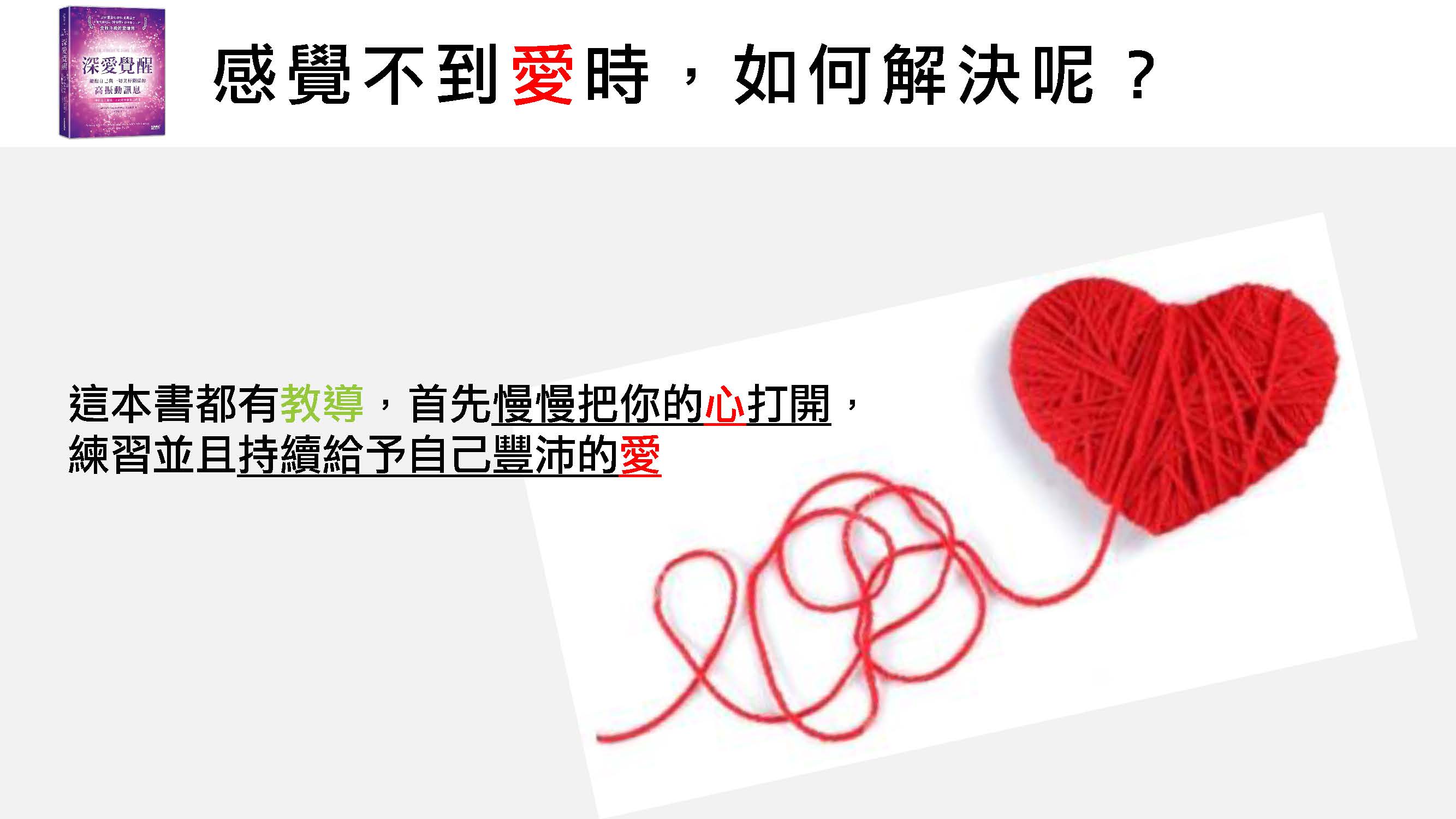 有一個很重要,大家常常會覺得愛是我們可以從別人身上得到的,可是,這一本書它告訴你,真正的愛都是來自於你自己。