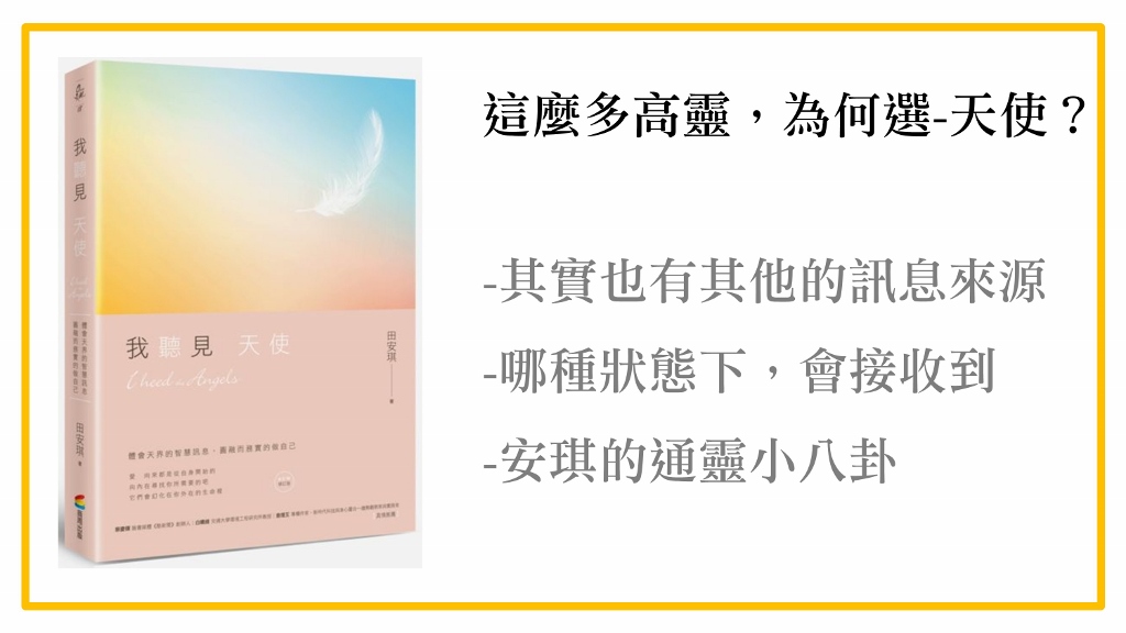 對呀!所以是在那個之前,妳在翻譯的時候,就是跟天使比較有緣,還是是因為在寫這本書的時候,妳特別對天使這個……為什麼我聽見天使,對不對?