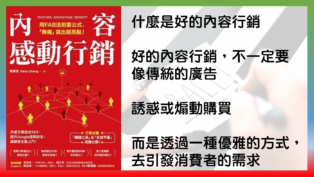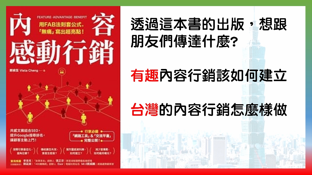 相對來講我看到國內比較少有這個內容行銷的書籍,就算是有的話,也大部分是從像歐美、日本翻譯過來的,當然那些書也很棒,但是有一個問題就是,他們比較談的是國外的案例,比較少台灣這邊的現況。