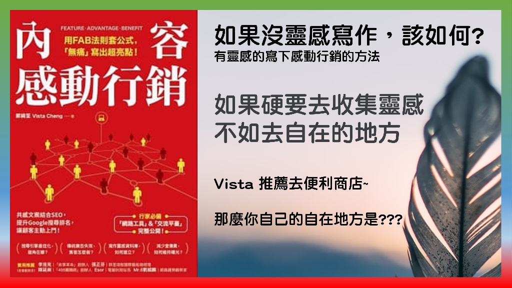 沒錯!如果我們Vista還講得不夠清楚,就要去買這本書-內容感動行銷,方言出版,非常棒的書,今天謝謝Vista跟我們分享這麼多,謝謝。
