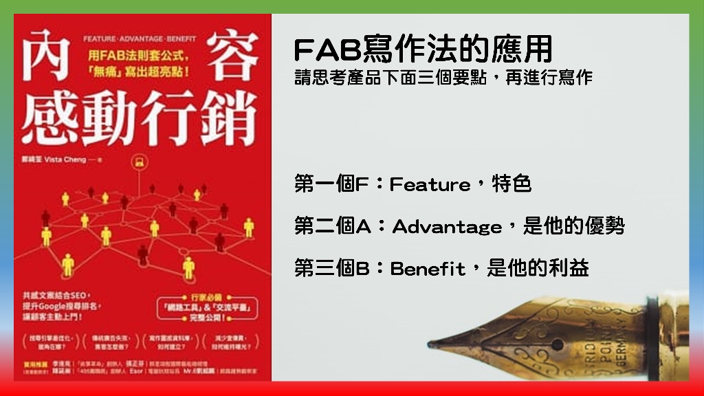 標題:內容感動行銷:用FAB法則套公式,「無痛」寫出超亮點!