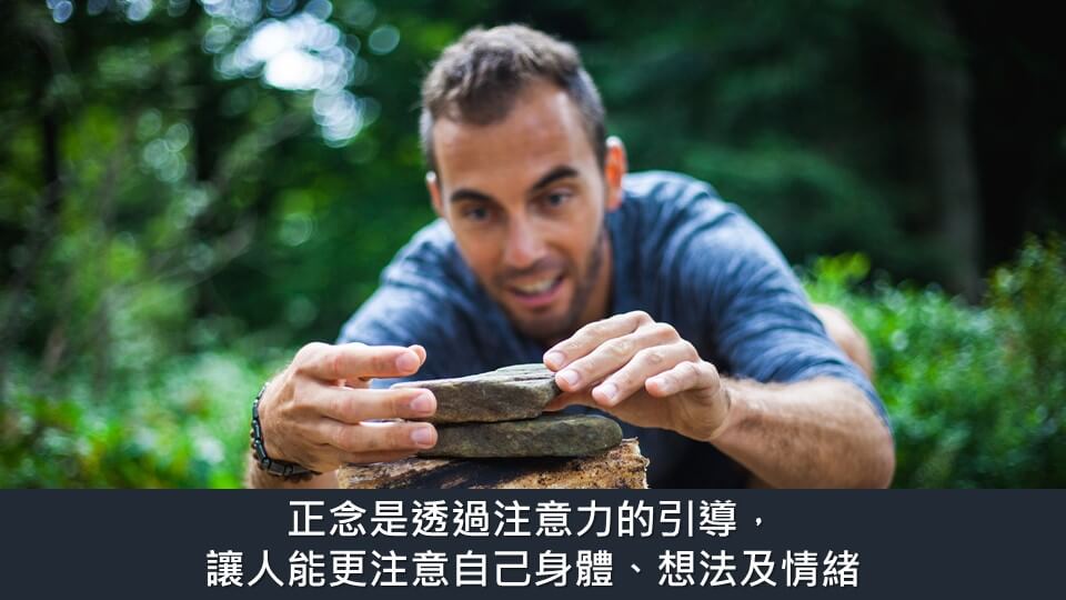 正念是一種方法,稱為正念工具,是透過注意力的引導,讓人能更注意自己身體、想法及情緒。