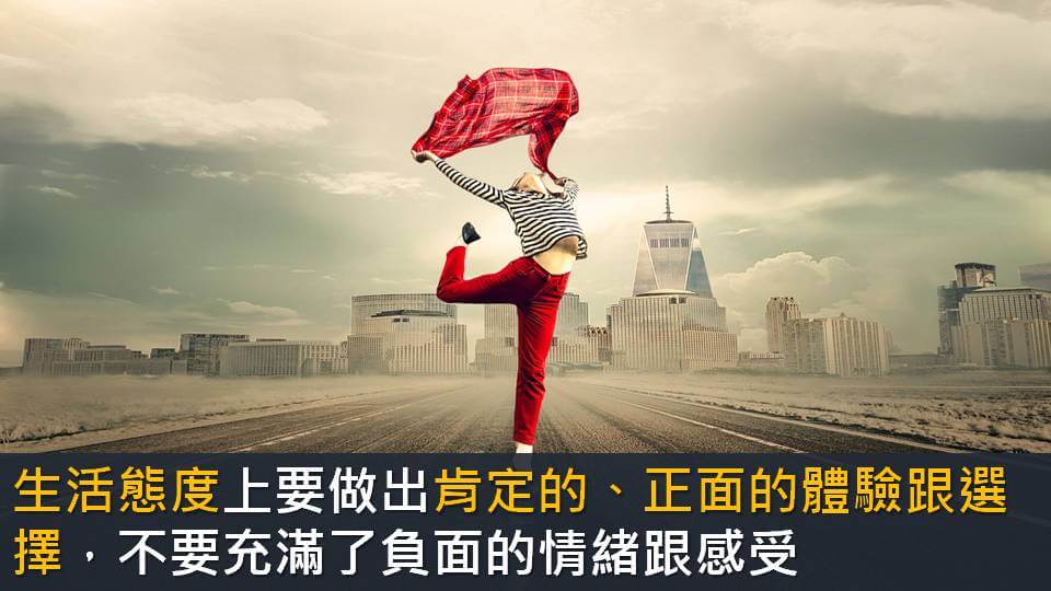 另外生活態度上,你必須要做出一些比較肯定的、正面的體驗跟選擇,不要充滿了負面的一些情緒跟感受。