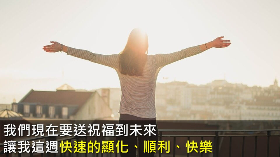 一切萬有的造物主,我們現在要送祝福到未來,讓我這週快速的顯化、順利、快樂,謝謝,完成了完成了完成了,請顯示。