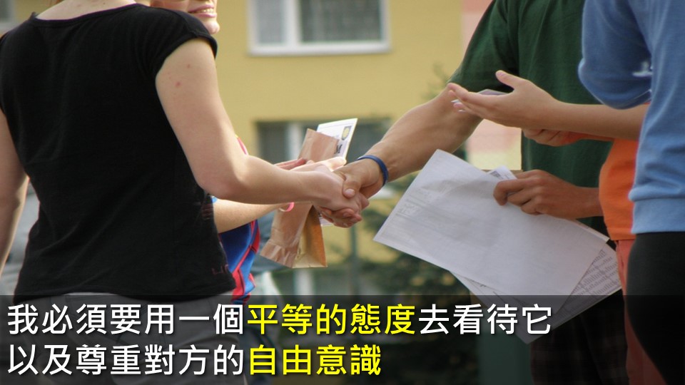我就去做挖掘想知道為什麼遇到身邊都是這樣的人,開始做拔除,我需要去抵抗黑暗,我必須要用一個平等的態度去看待它,以及尊重對方的自由意識,突然之間他們都不會在接觸這些事情,而這些人也不會在出現在我的生活中了。
