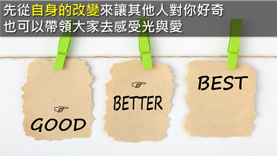 蘇: 我身邊的朋友以及我老公都跟我說幹嘛弄這種騙人的東西?但當我跟他說光和愛以及帶著他去做冥想時,並且有看到我在改變,可以先從自身的改變來讓其他人對你好奇,也可以帶領大家去感受光與愛。