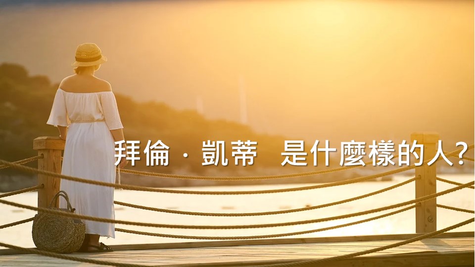現在來介紹拜倫.凱蒂是誰,她是生長在南加洲沙漠的一個城市,她和普通人、你、我都一樣,有個快樂的家庭,有丈夫、三個兒女,那個時候她是經營房地產,做得非常成功