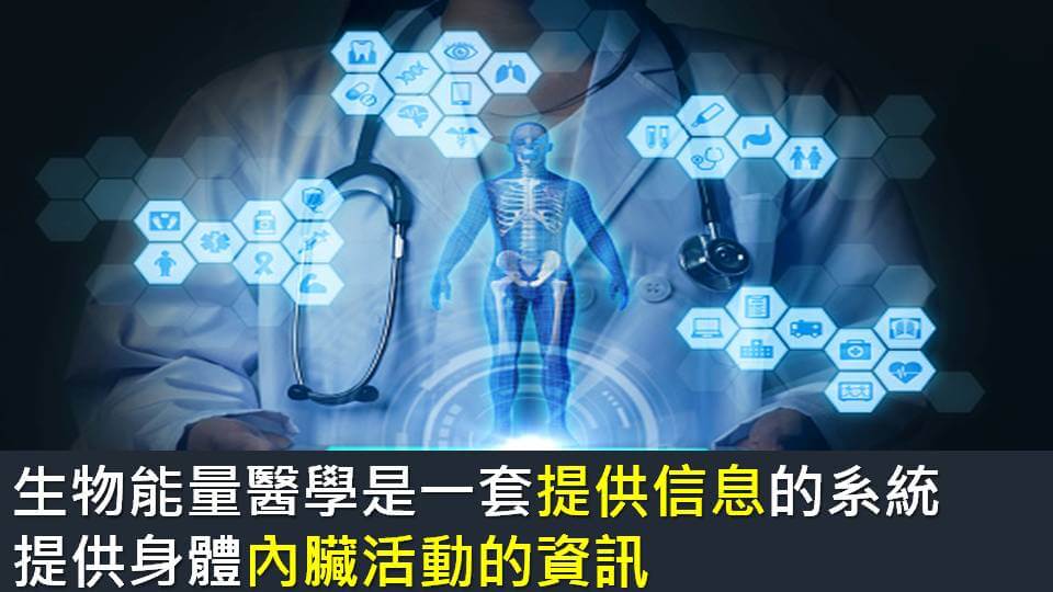 生物能量醫學是一套提供「信息」的系統,提供身體內臟活動的資訊,利用電子儀器在人體皮膚上的特定點,測出全身內臟器官、系統活動,包括情緒是否平衡和諧的資訊醫學。