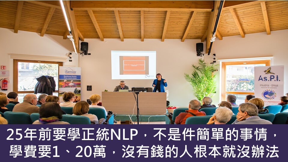 在25年前要學NLP那不是一個簡單的事情,特別是我沒有錢,還記得那時候,很多很有名的機構比如生產力中心你要去上那個NLP的課程,上下來都要1、20萬,我根本就沒有辦法。