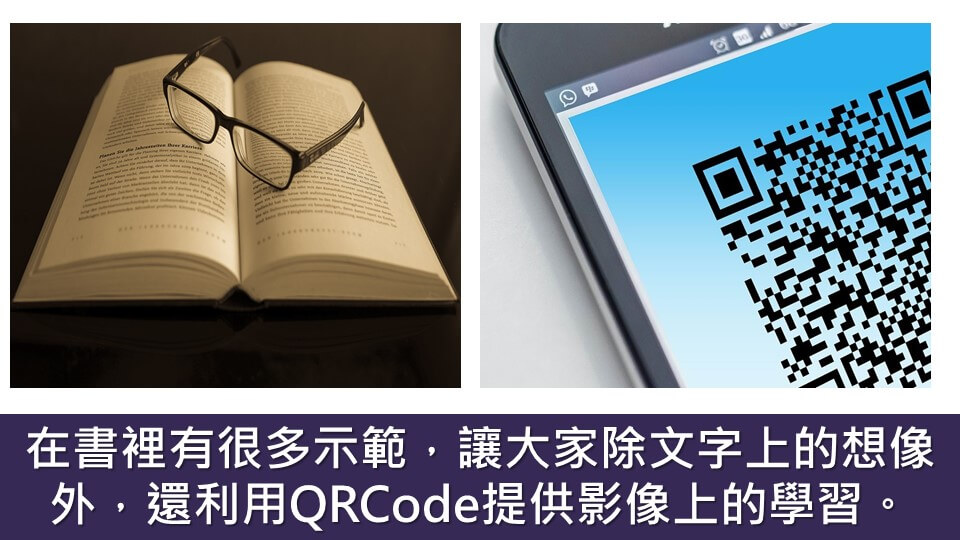 對,我是發現老師真的是很貼心,老師在書裏面有很多的示範,寫到那裏就有那個QRC,可以讓大家讀這本書的過程當中來學習除了文字上的想像之外,還可以有影像上的學習