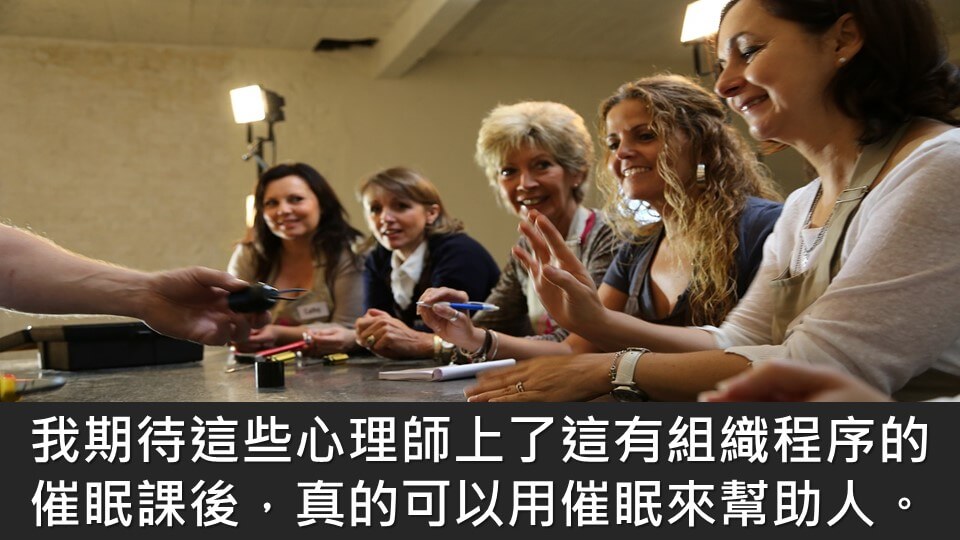 如果心理師也正在邁向心理師的道路,他們來學催眠的目的就是做助人的工作,這就會讓我很有壓力,那個壓力是他學了催眠之後出去就要用了,逼得我開始要去想,一開始的時候並沒有想到要做這麼多的事情,只是想避免他們出去用催眠的時候傷害到別人。