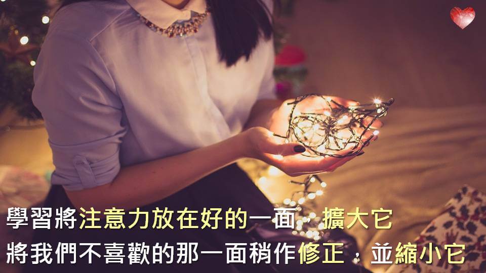 如果我們能學習將注意力放在好的一面,擴大它,並將我們不太喜歡的那一面稍作修正,並縮小它,人生其實是可以越過越快樂、越過越輕鬆的!