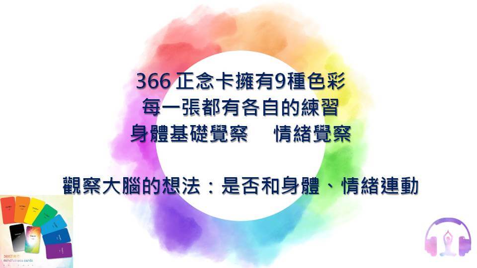 366 正念卡的創作理念,就是為了讓一開始接觸正念而不知該從何著手的初學者們練習的。當然對於已經有學習過正念的朋友們來說,366 正念卡也是增加平日練習的一套好工具。