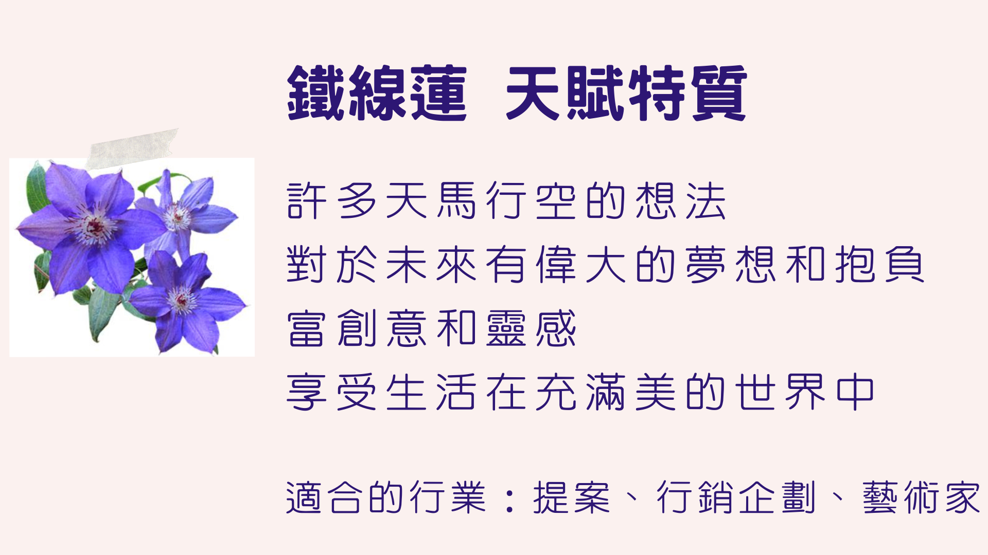 12種靈魂花精的獨特天賦,你是哪一種?鐵線蓮 & 龍膽草 【心宇愛-幸福引航家】