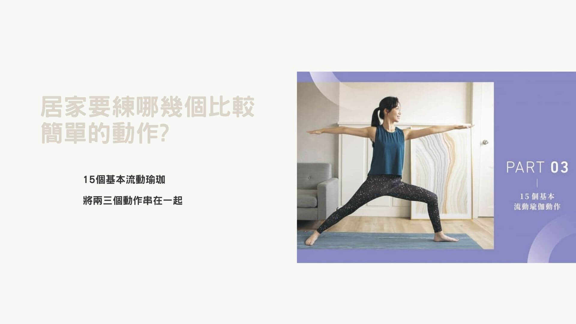 - 啟動活力的早晨瑜伽:「拜日式A」加上「英雄二流動」的序列,充分喚醒身體。