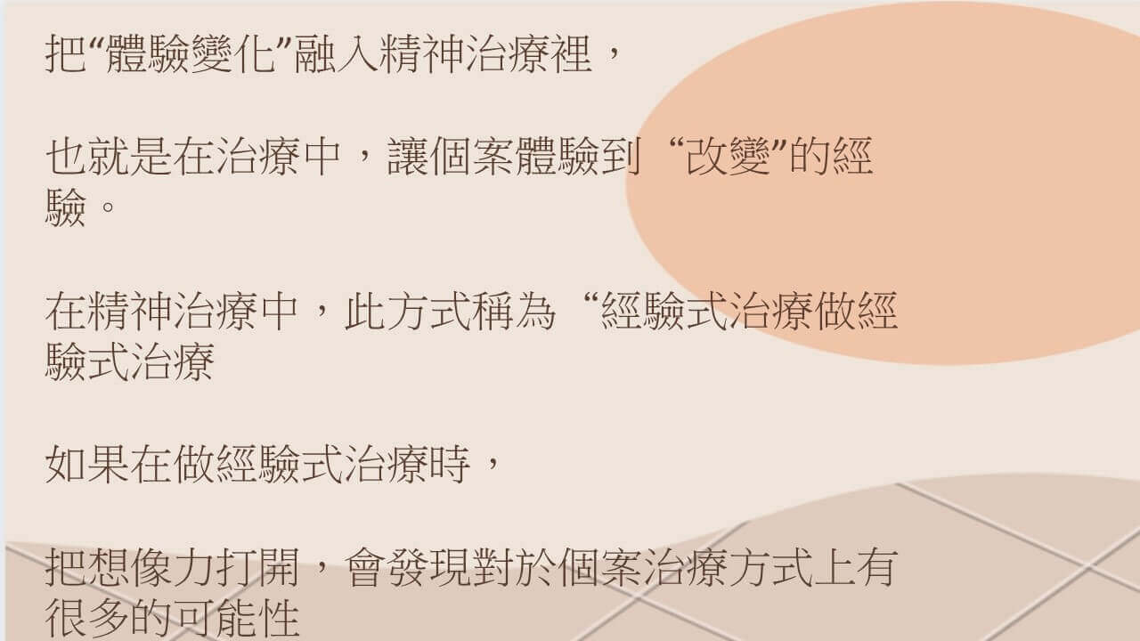 若在做經驗式治療時把想像力打開,會發現對於個案治療方式上有很多的可能性。