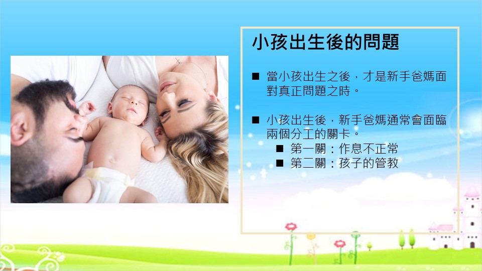 出生以後,新手爸媽們常常面臨到兩個很大的挑戰關卡:作息問題、管教孩子。