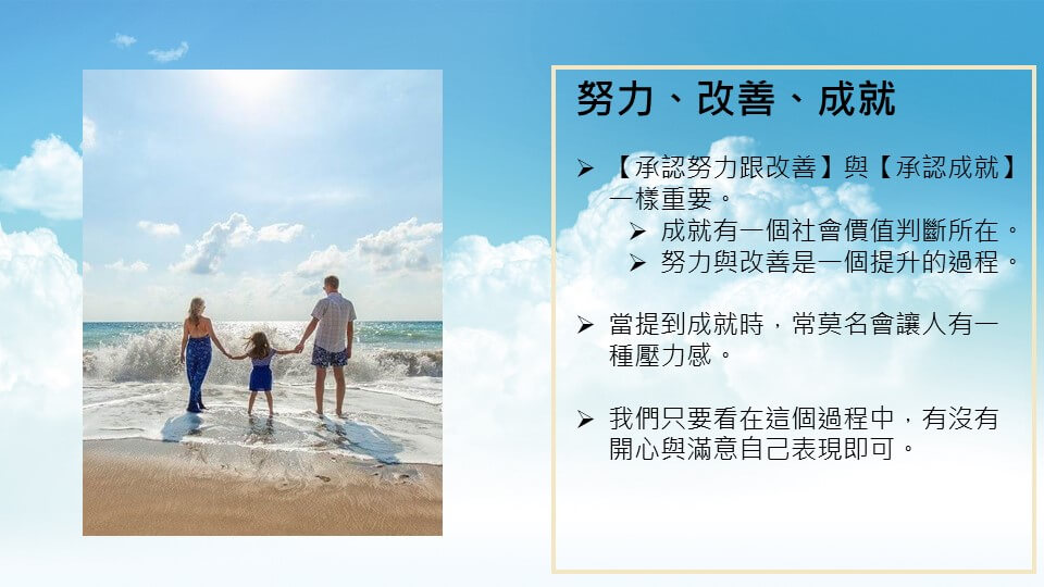 【承認努力跟改善】與【承認成就】是一樣重要。