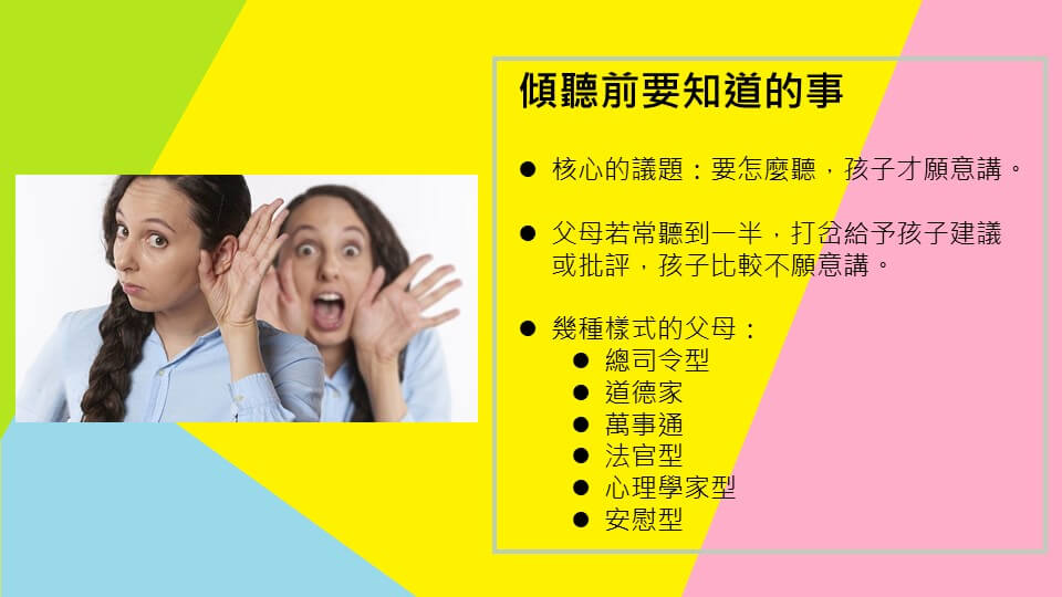 在傾聽孩子的話主題中,有一個核心的議題,就是父母要怎麼聽,孩子才願意講。