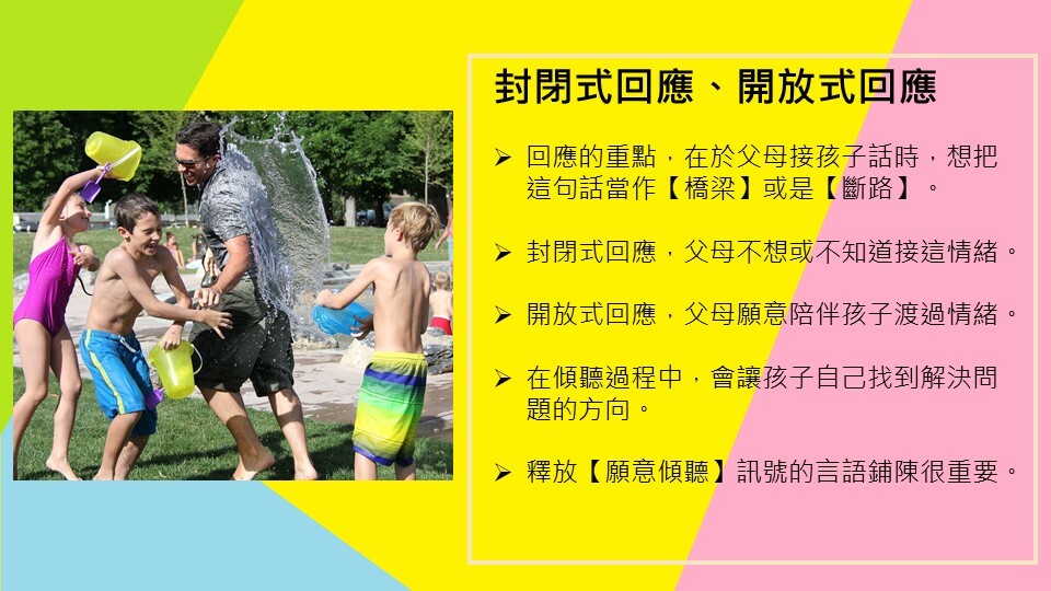 開放式回應,則代表父母此時願意陪伴孩子渡過情緒。