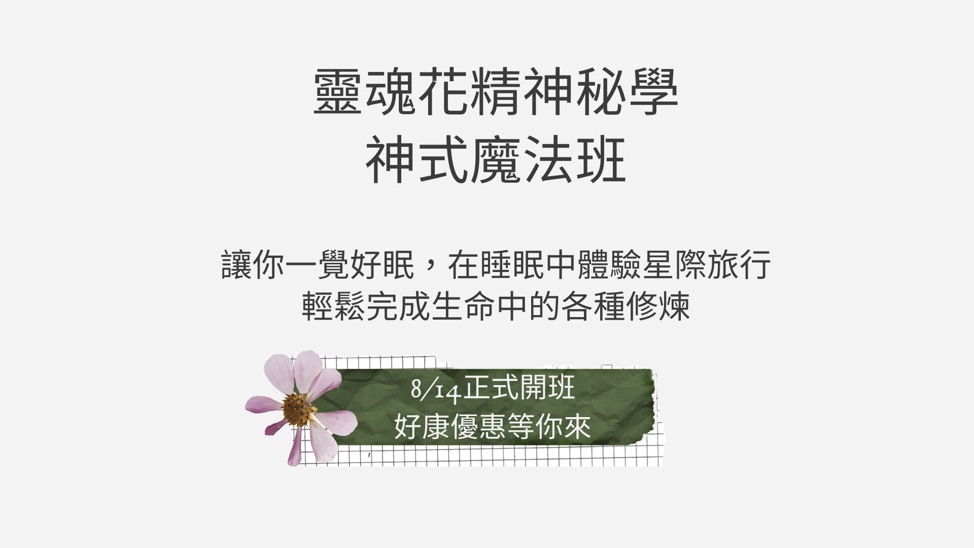 提醒你,本次的好康課程:靈魂花精神秘學-神式魔法班
