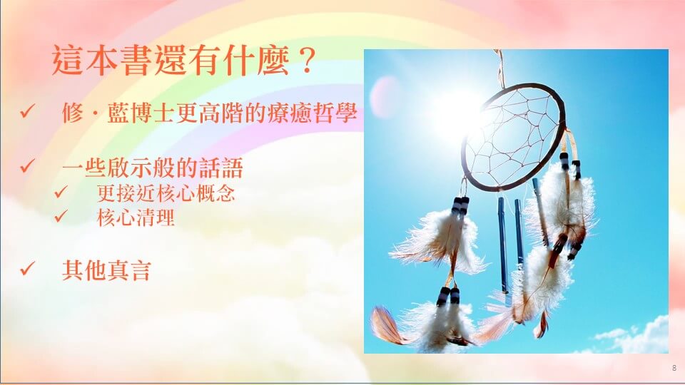 這本書,除了剛剛提到零極限一個更進階的真言之外,還補充了修‧藍博士更高階的療癒哲學,獨家公開修‧藍博士零極限裡面沒寫到的一些蠻重要的概念。