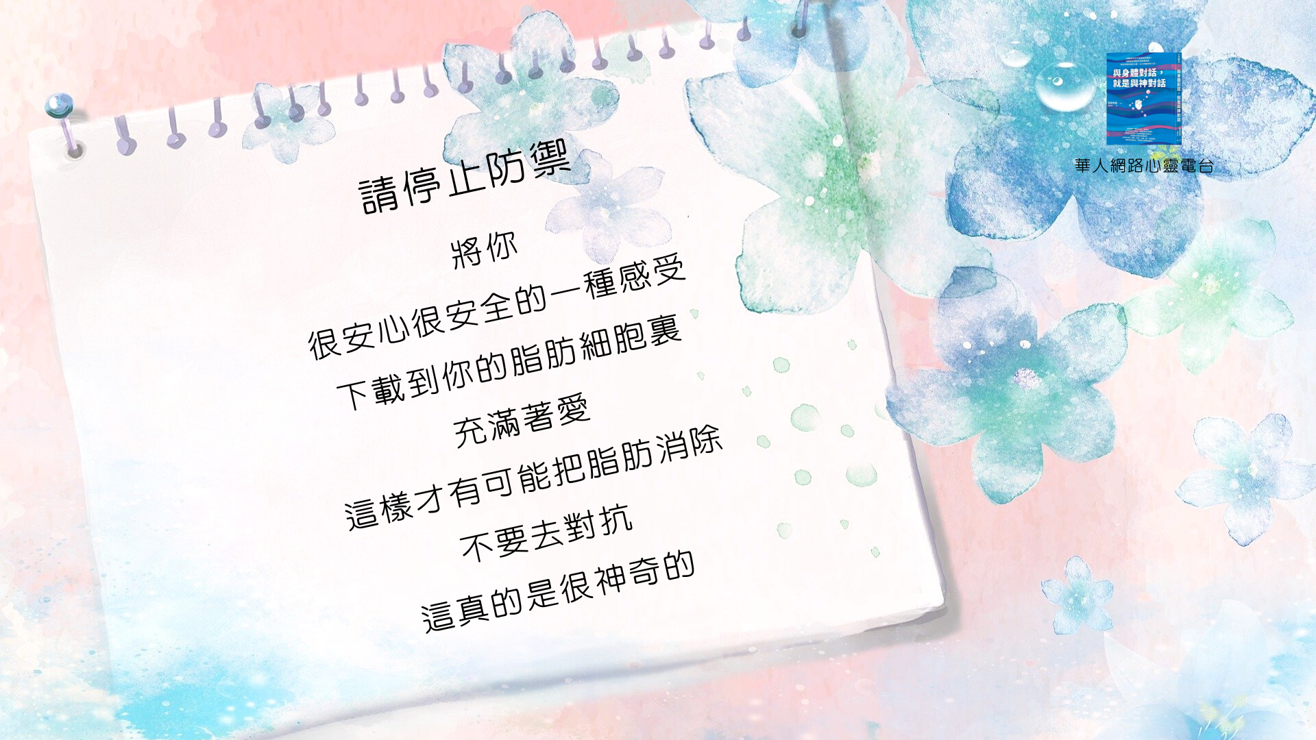 充滿著愛,這樣有可能就可以把脂肪消除,就是不要去對抗,這個真的很神奇,