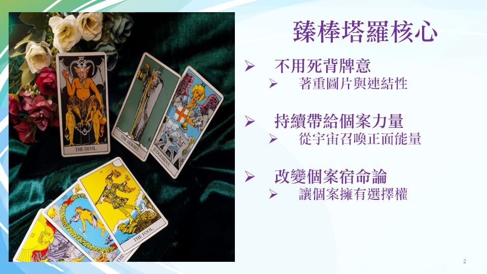 讓塔羅不僅僅只有塔羅,在解牌的過程中,還能透過一些心理諮商技巧,帶給個案正向的力量