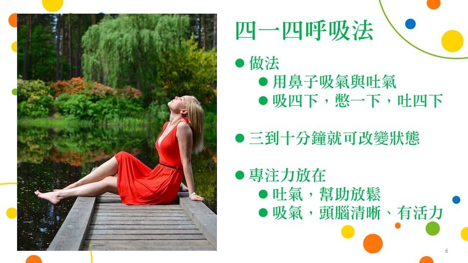 此外,凱熙老師還分享了一個讓人放鬆的呼吸法–四一四呼吸法