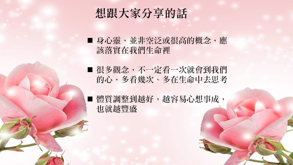 ◆身心靈,它不是一個很空泛或者是很高的概念,應該要落實在我們的生命裡