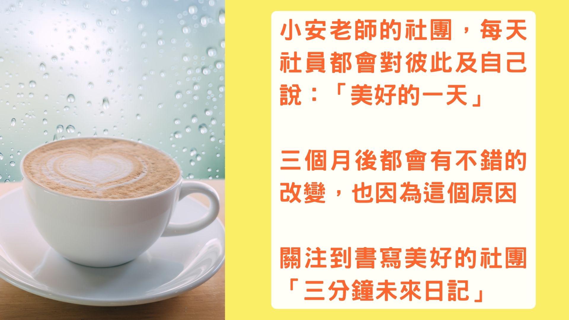 我們安一心班的同學,其實在每一天都會在群組對自己說「美好的一天」,同學們,有時候會覺得說...誒為什麼我們需要每一天都講這一句話呢?