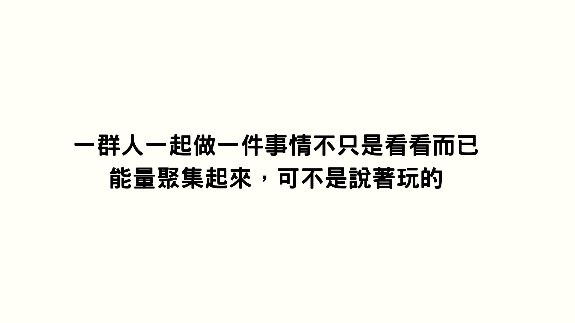 我發現一群人來做一件事情的時候,大家會變得不是只是看看而已,每個人都會發生一些行動,看別人到底做哪些或者實現了什麼,這個就是一起來做一件好事的一個過程