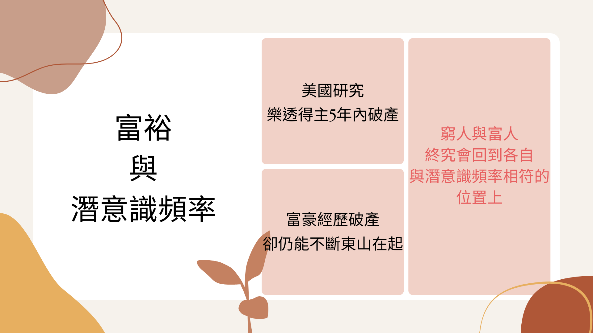 窮人跟有錢人最後好像還是會各就各位,回到與自己潛意識頻率相符的位子上。