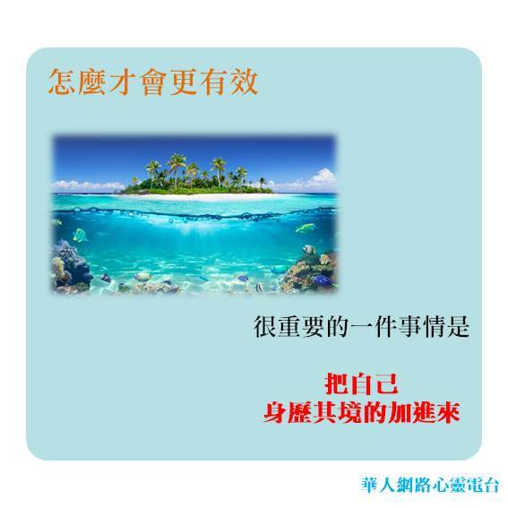 也因為強度增強了,加強了我們對於這個心靈影像的連結。當連結增強的時候,也就加深了它在我們腦海裡面的烙印,並且對我們能夠造成更多的提醒跟改變。