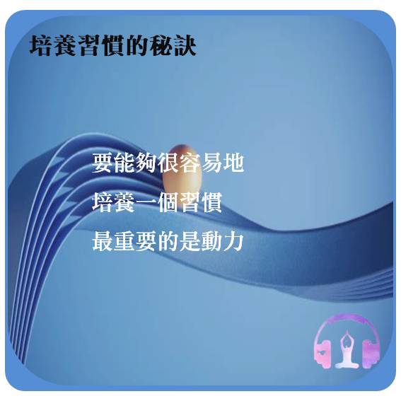 還記得我們剛剛在開頭所提到的:要能夠很容易地培養一個習慣,最重要的是動力。無論那個動力是來自於內心深層的驅動力,或者是我們在執行的過程當中,所產生的一種自我鼓勵 的這樣子的一種動力。