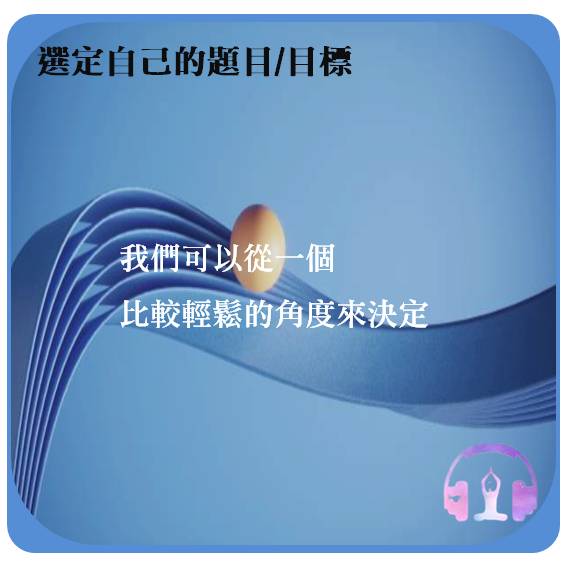 第一個步驟呢就是選一個你想要做的題目,例如說是想要培養運動的習慣,或者是想要培養閱讀的習慣…你可以從動力的角度來看:最近好像身體比較不好、比較容易生病,所以我應該培養一個運動的習慣,來鍛鍊自己的身體,讓自己的體質變得更好。